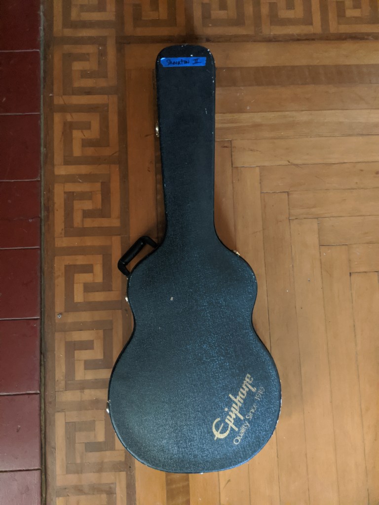The only signs of wear are on the original Epiphone hard case, which is included.