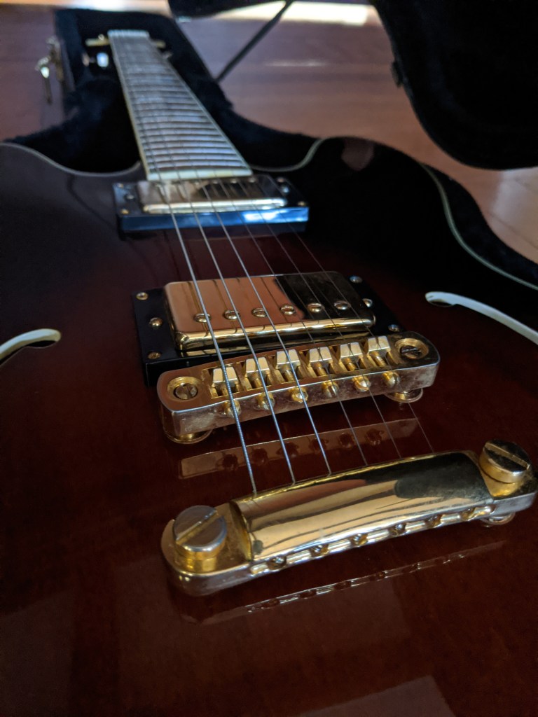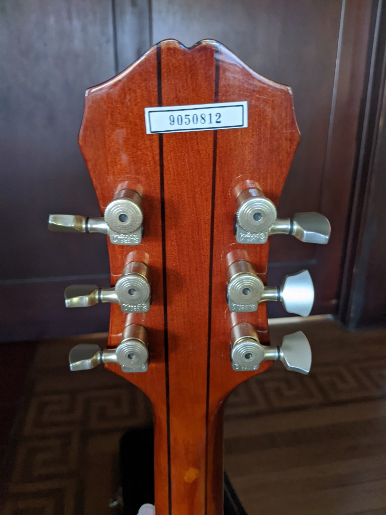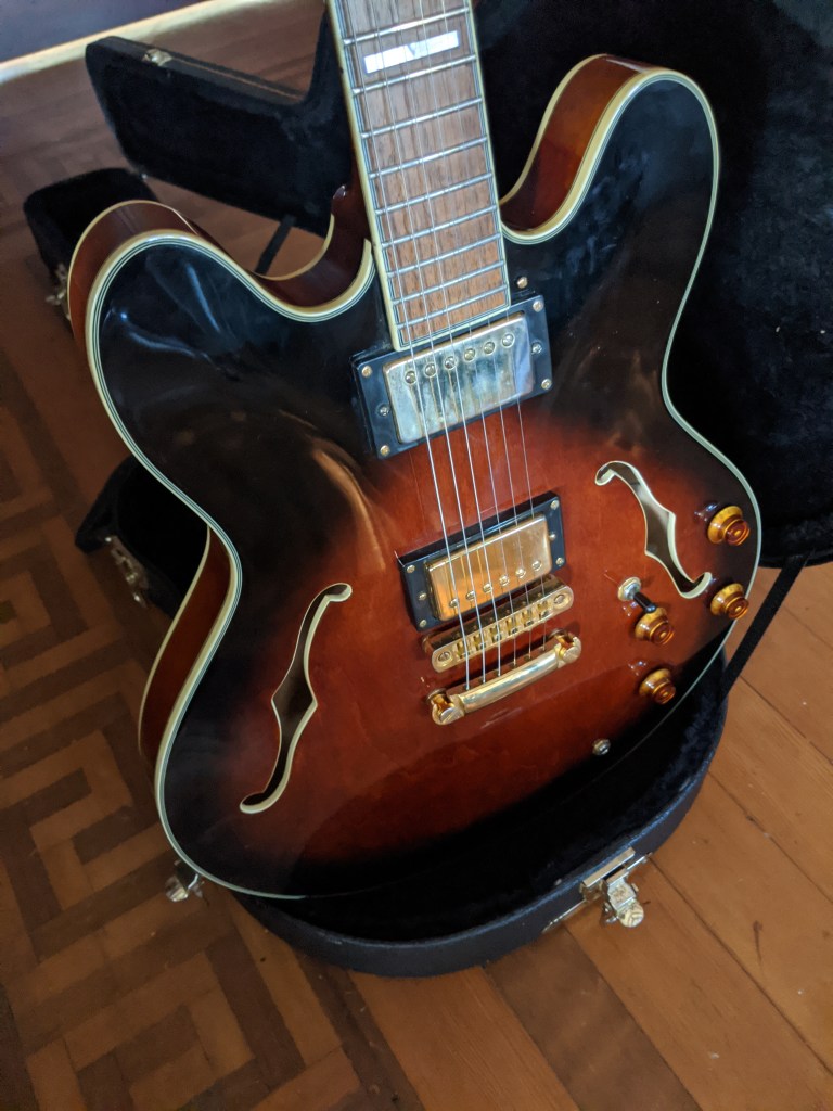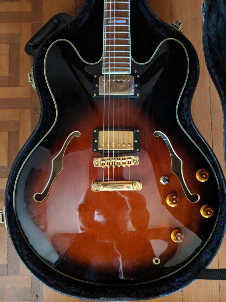 I have for trade a beautiful 1989 Epiphone Sheraton II electric guitar in a glossy tobacco sunburst finish. The guitar is in pristine condition. I’m seeking to trade this guitar, not to sell it, so please let me know what you have to offer!