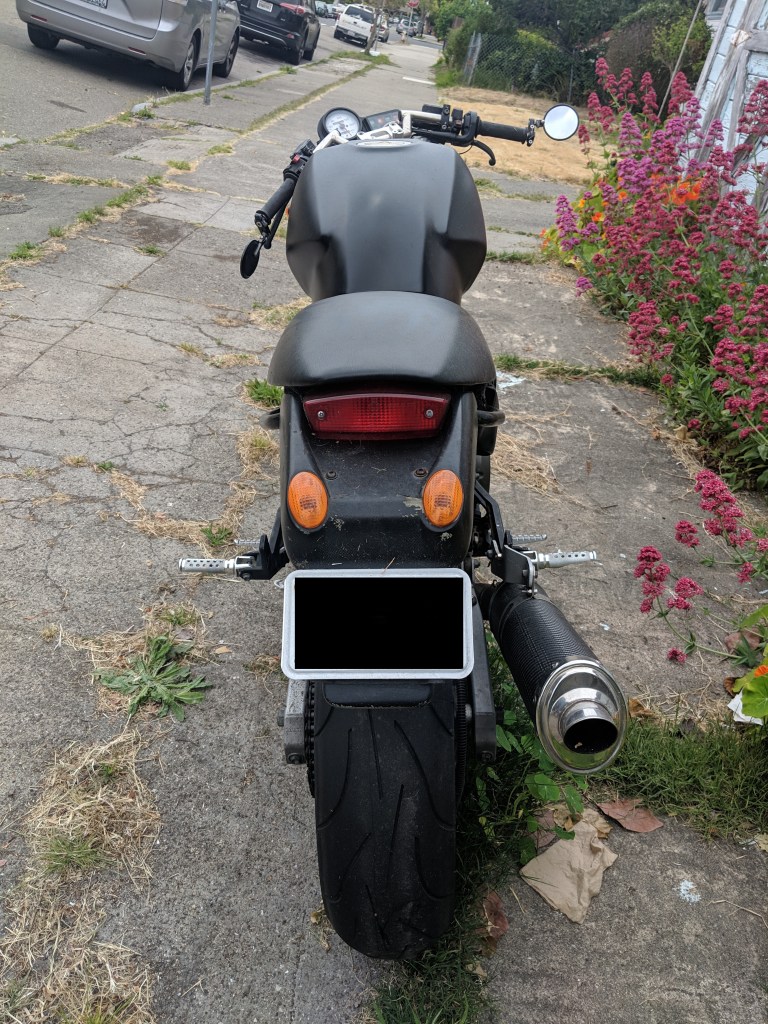 - At around 32k miles, it was knocked over while parked. After the drop, the tank was repaired and repainted, the side stand was replaced (with an OEM spring-loaded side stand), and a foot peg was replaced.