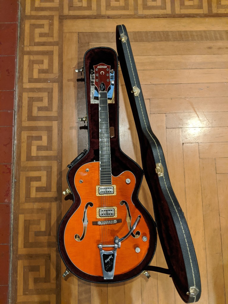 I have for trade a mint 2004 Gretsch 6120SSU Brian Setzer signature model electric guitar in orange finish. The guitar is in pristine condition. I’m seeking to trade this guitar, not to sell it, so please let me know what you have to offer!