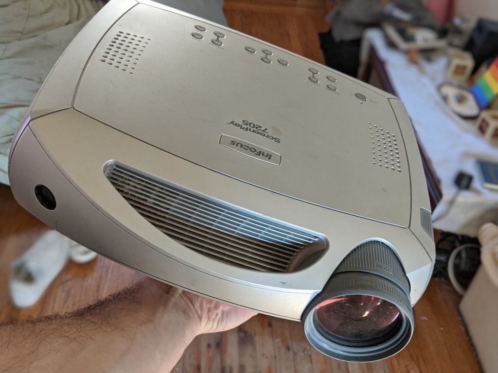 I have a movie projector I’m hoping to trade away. I’ve had it for 8 years, and have used it for the last 3 years as my primary medium for entertainment, projecting Netflix, Hulu, etc onto my apartment’s wall while connecting to speakers via Bluetooth. I’m out of that apartment and moving on, so hoping to trade this projector for something else. Details below.