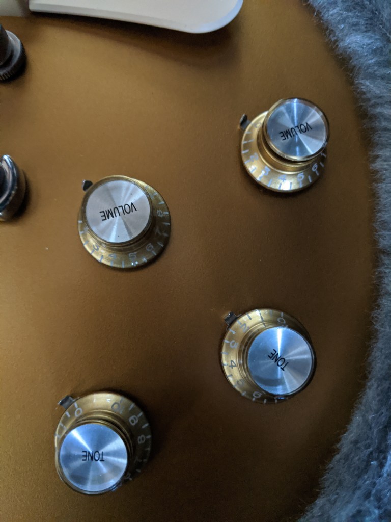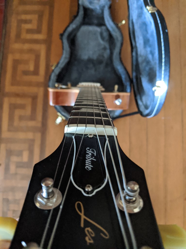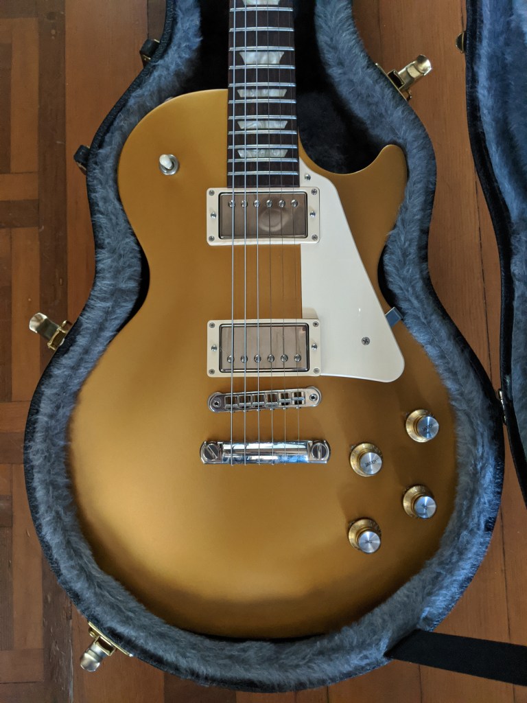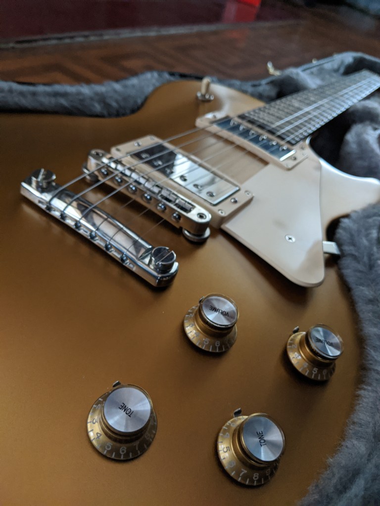 I have for trade a beautiful 2017 Gibson Les Paul Gold Top Tribute electric guitar in excellent condition. The guitar is all stock and has been very well cared for and not played much. It’s sat protected in its case for the last couple years. No dings, dents, or scratches to be found (the marks on the back that look like dents are just knots in the wood — tough to show that in photos but you’ll see in person). Very minor regular wear around the edges in the usual spots. This guitar has never been gigged, only played at home and then stored.