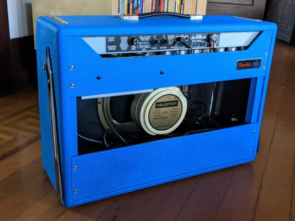 I have for trade an almost-new Limited Edition Fender ’68 Custom Deluxe Reverb guitar amp in electric blue, with footswitch, cover, and Fender tiltback legs. I’m seeking to trade this amp, not to sell it, so please let me know what you have to offer!